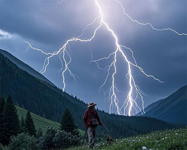 蟲草生長(zhǎng)區(qū)域多位于海拔3000米以上的高原草甸或高山峽谷,地勢(shì)開闊且植被稀疏。這類環(huán)境雖適合蟲草生長(zhǎng),卻也成為雷電災(zāi)害的“高危區(qū)”。雷電發(fā)生時(shí),人體因缺乏遮蔽物極易成為電流導(dǎo)引目標(biāo),瞬間釋放的高壓電流可導(dǎo)致嚴(yán)重傷亡。因此,采挖者需對(duì)山區(qū)天氣的復(fù)雜性保持高度警惕。